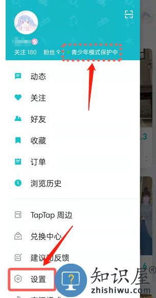 2、这时在左侧的菜单栏页面可以看到青少年模式正在开启,点击设置。