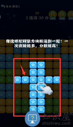 本作的操作方法算是比较特立独行的,玩家们只要点击有两个或以上相同方块的地方即可自动消除连接起来的星星。消除游戏普遍采用了三消换位或者连线消除的方式,但是向本作这样只要两个相邻的方块即可消除,并且不需要任何连续动手过程,点击一下就能自动消除周围所有相连的方块,这简单到极致的消除方式,着实让2265小编惊讶了很久。