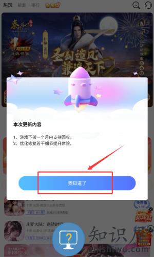 2、查看更新公告后,点击红框标注的我知道了按钮。