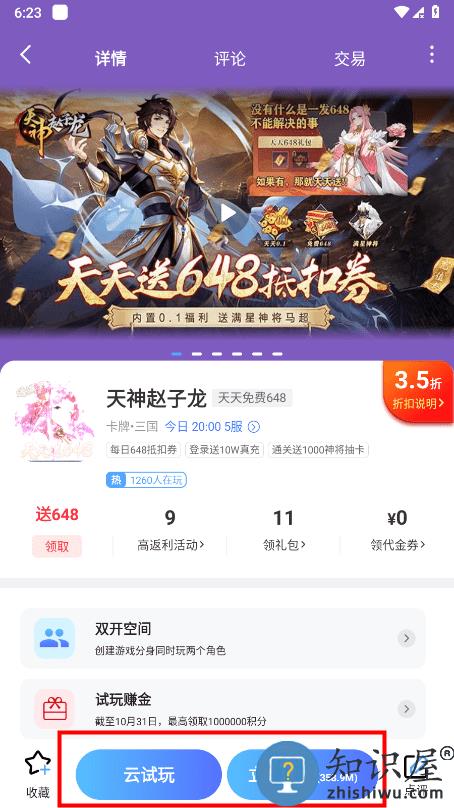 在游戏详情页,可以看到试玩游戏的福利,点击云试玩或者立即下载,就可以体验游戏了。