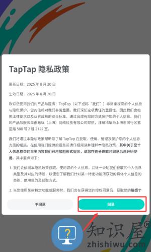 1、阅读隐私政策后,点击红框标注的同意按钮继续使用。