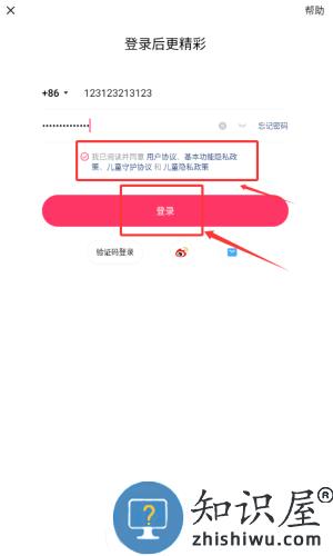 2、输入手机号和密码,勾选协议后点击红框登录按钮。