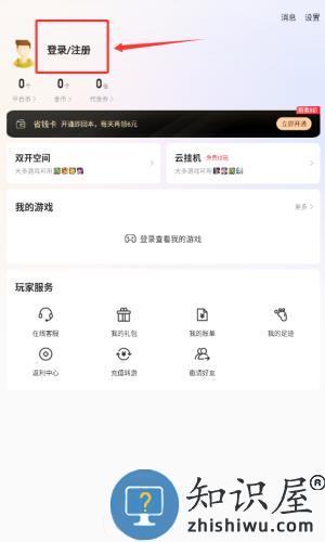 2、在首页点击红框标注的登录注册按钮进入账号页面。