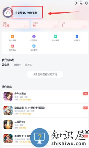 2、点击红框标注的立即登录按钮,查看游戏福利。