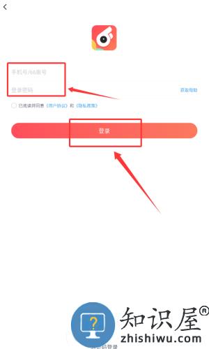 3、输入账号密码后,勾选协议并点击红框登录按钮。