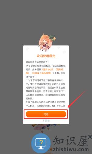 1、阅读用户协议后,点击红框标注的橙色同意按钮继续。