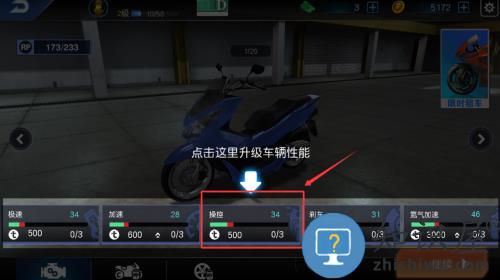 3、在车辆升级界面,点击红框标注的操控属性进行升级。