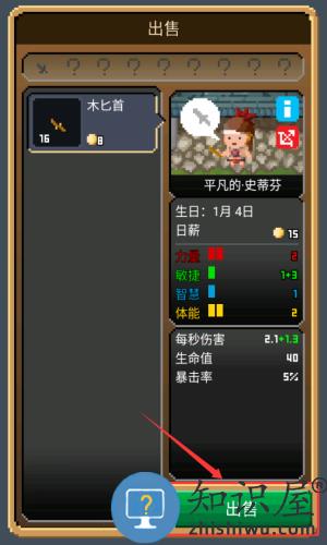1、查看木匕首属性后,点击红框标注的绿色出售按钮。