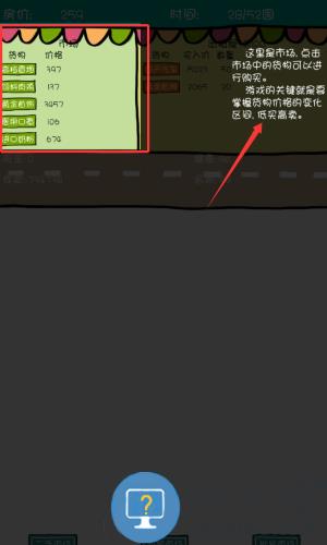 1、在市场界面查看红框标注的物价列表,了解商品价格。