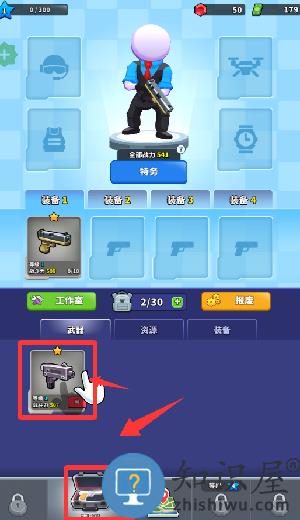 1、进入游戏点击道具栏里把枪升级。