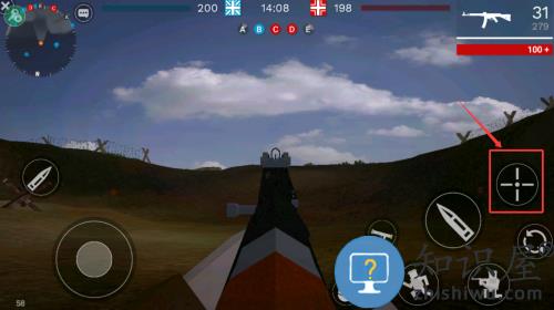 2、点击红框箭头指向的瞄准图标开镜射击。