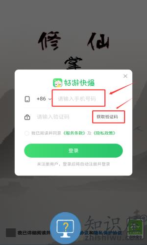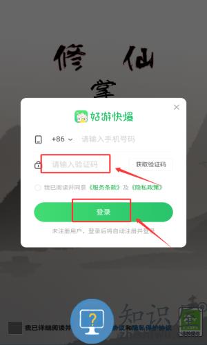 2、在登录界面输入手机号,点击红框获取验证码按钮。