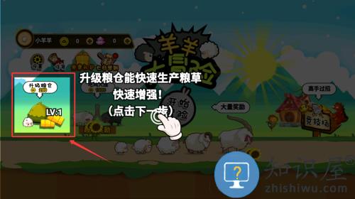 1、点击红框标注的升级粮仓按钮,提升粮草生产能力。
