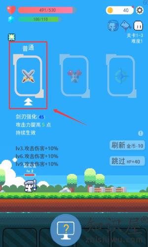 3、选择红框标注的剑刃强化道具,提升攻击力继续冒险。