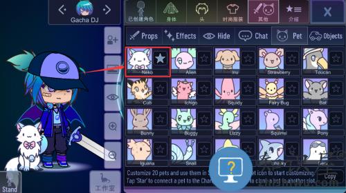 1、在角色选择界面点击红框标注的Gacha DJ角色开始定制。