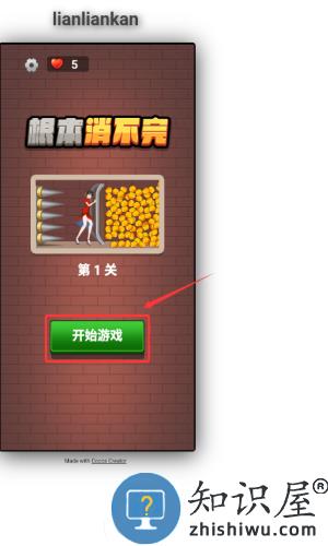 2、点击红框箭头指向的绿色开始游戏按钮,进入第一关。