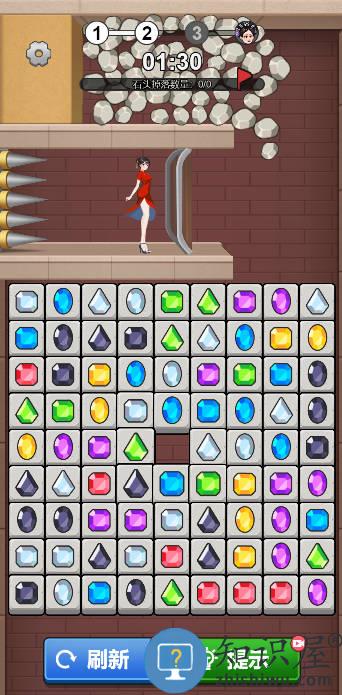 2、点击钻石图案完成消除操作,注意避开危险区域保护角色安全。