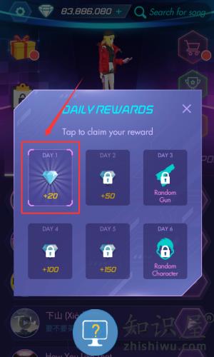 2、点击红框箭头指向的DAY 1奖励,领取20钻石。