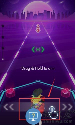 3、根据红框提示拖拽按住瞄准,点击底部区域发射。