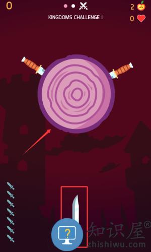 3、将匕首投向红框树桩目标,完成交叉插刀挑战。