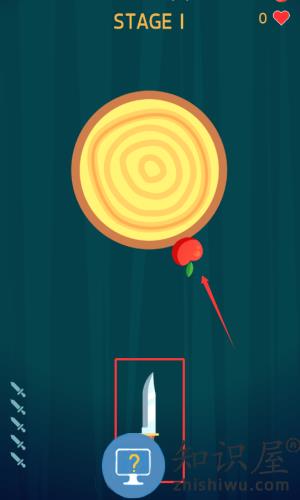 3、按照红框提示将小刀投向苹果,完成第一关挑战。