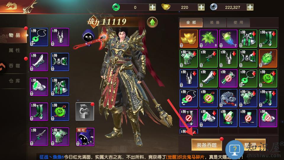 1、打开背包点击装备吞噬。