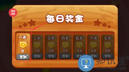 1、点击红框标注的签到按钮,领取首日5金币奖励。