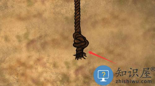 3、根据红框箭头拉扯绳结末端,解开缠绕的纤维。