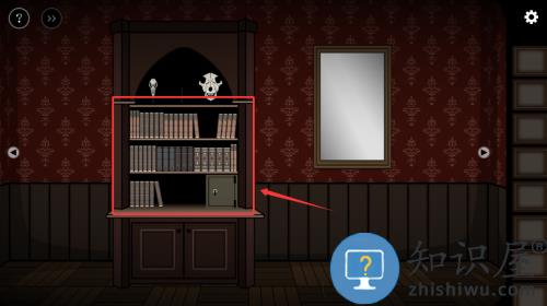 3、按照红框箭头提示,向右移动书架寻找通道。