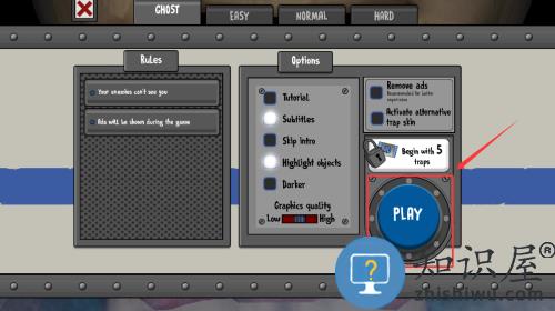 1、选择难度后点击红框标注的蓝色PLAY按钮,开始游戏。