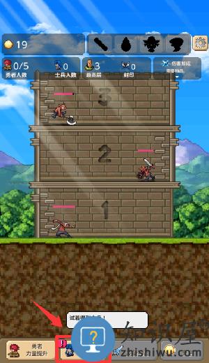 1、进入游戏点击2层把勇士召唤出来击毙妖怪。