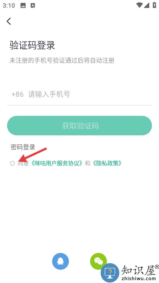 3、勾选同意协议后输入手机号登录或点击下方微信QQ一键登录。