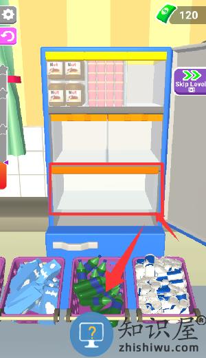 ·将篮子中所有的物品全部清理掉,成功将其放到冰箱中,每一排的格子都能放入对应物品,完后挑战。