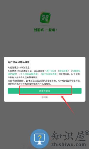 1、阅读用户协议后,点击红框标注的绿色同意并继续按钮。