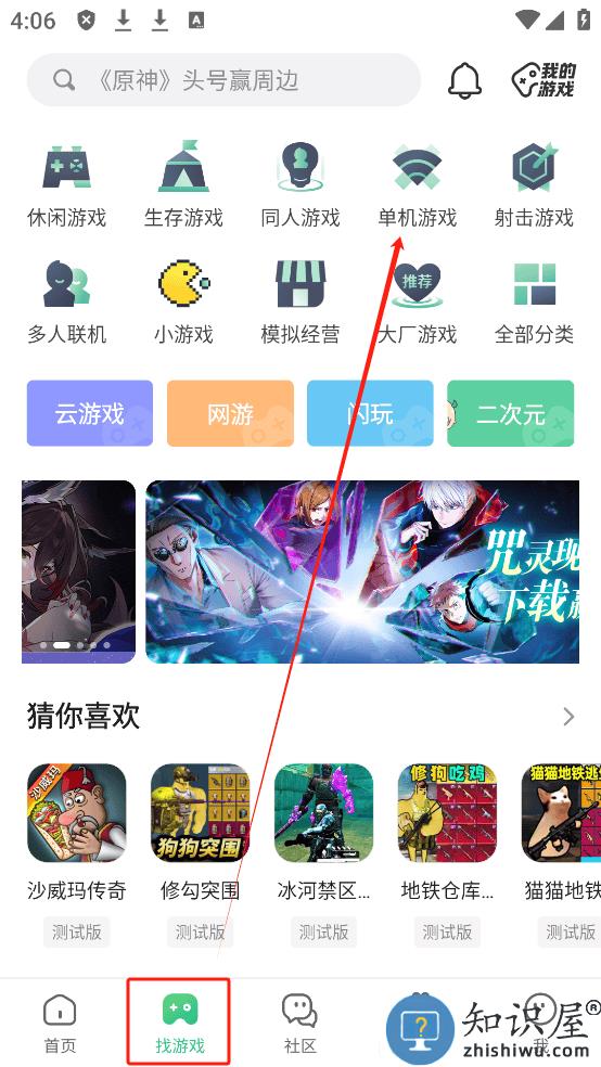 首先在手机上打开游戏盒子,如下图所示,包含了新游、单机、生存、冒险、网游、在线玩等多种题材;