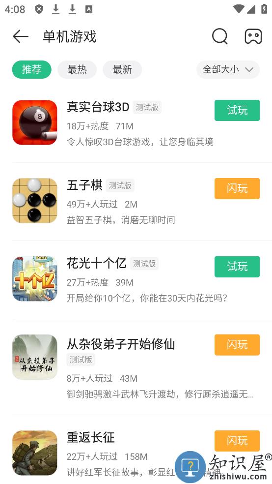 选择你自己喜欢的,点击试玩,就会下载到手机上,下载好就可以开始游玩了;