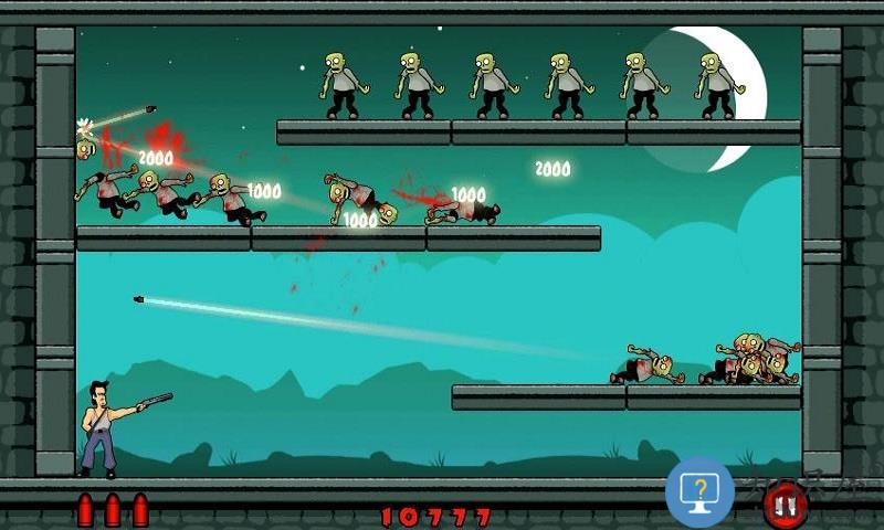 所以你必须要开动脑筋了,你需要利用子弹的反弹来消灭大部分的僵尸