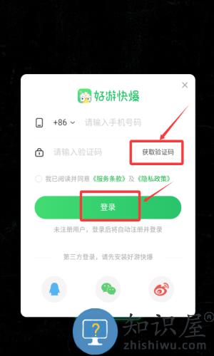 2、输入手机号码,准备获取验证码登录。