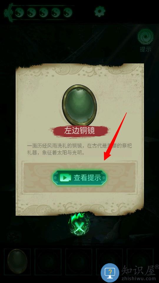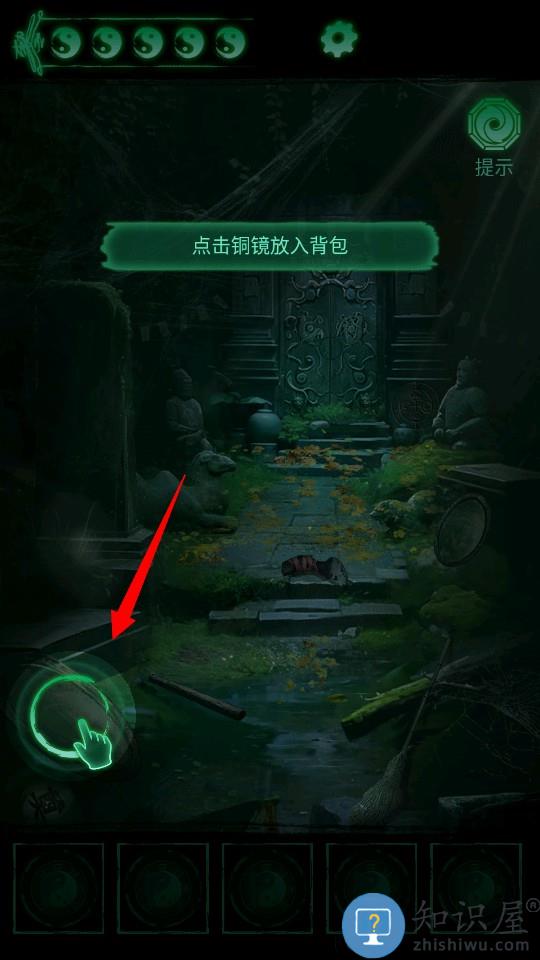 经过一段剧情后,点击地面上的铜镜拾取。