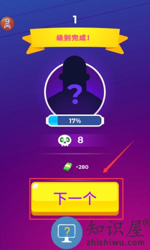 1、点击红框标注的黄色下一个按钮,领取奖励并进入下一关。
