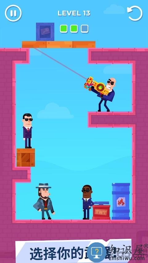 1、丰富的关卡可以尽情挑战,尽可能使用一击来打败敌人,能用一颗子弹就绝不用两颗;