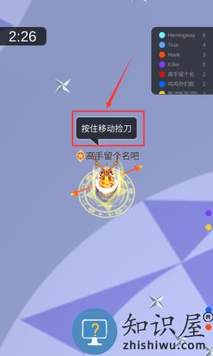 3、根据红框箭头按住移动捡刀,操控角色拾取武器。