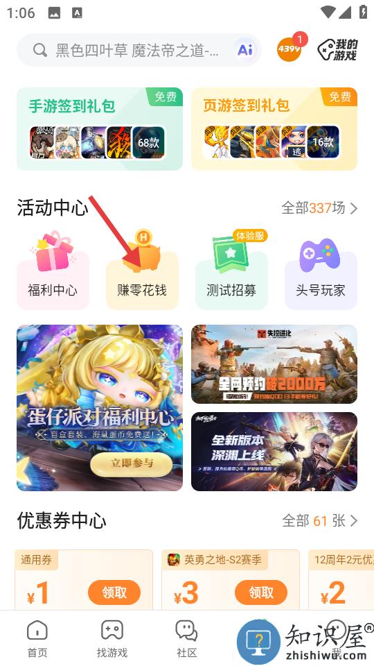 2、点击中间的赚零花钱。