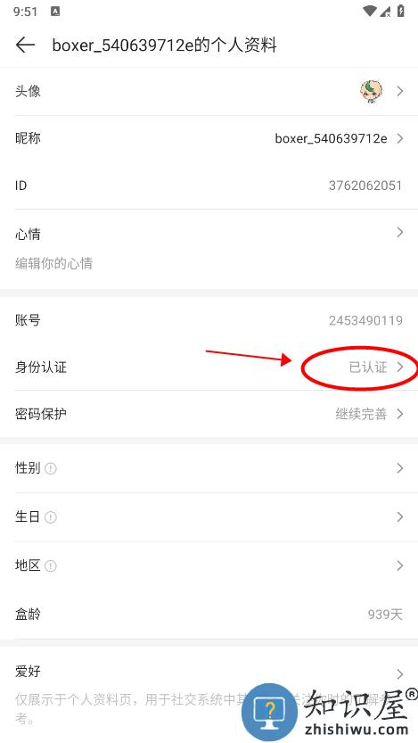 点击身份认证即可查看。