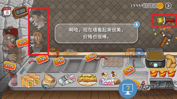 或者购买刷子改变下你的店面风格,吸引更多人。左边那个倒计时就是小偷和乞丐出现的天数,自己要注意。