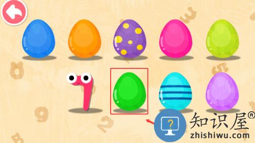 1、点击红框箭头指向的绿色彩蛋,完成选择任务。