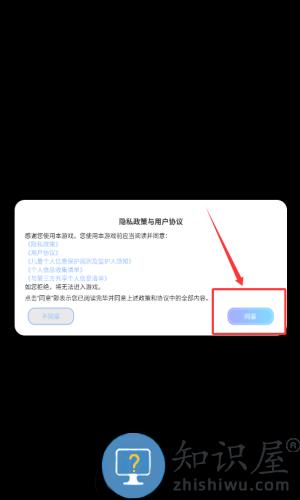 1、阅读隐私政策后,点击红框箭头指向的蓝色同意按钮。