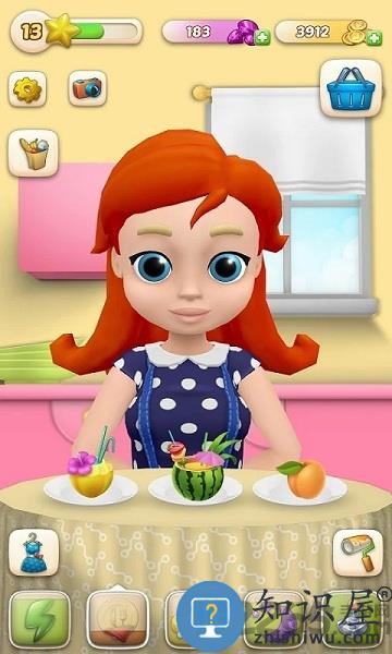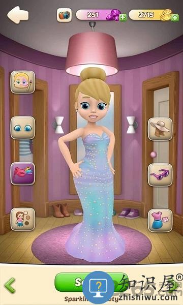 为她装扮、洗澡、刷牙等。通过30个关卡,解锁精美的服装、更改室内装饰等。