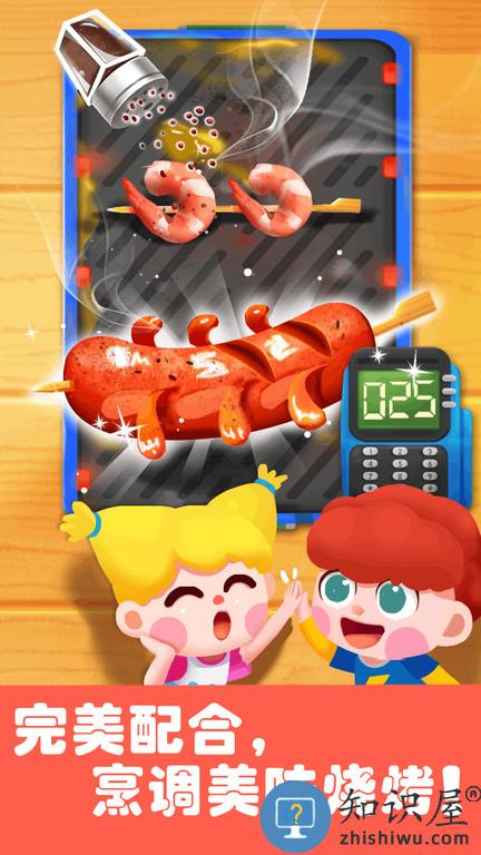 2、根据红框提示,从橱柜取出肉串交给小女孩。