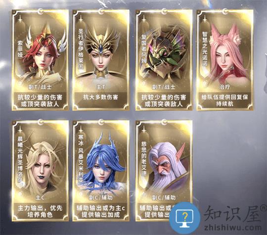 该阵容中的精英伙伴和阿努比斯是游戏前期送的,中途抽到定位相同的伙伴可以直接替换。晨曦光辉作为少有的远程单点输出,属于主C的最佳人选之一,一些前排较肉的关卡可以比较轻松突破。副C的位置可以用其他类似的输出替换,例如慈悲的老艾德、风语者凯兰崔尔等。